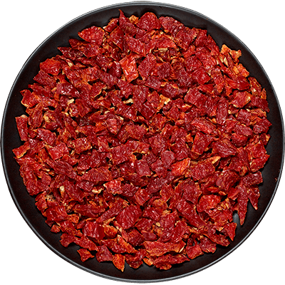 Domateslerimiz, Tarım Departmanımızın sıkı gözetimi altında, sözleşmeli çiftçiler tarafından yerel olarak yetiştirilip özenle hasat edilmektedir. Hasattan sonra, 24 saat içerisinde kurutma alanlarımıza taşınan domatesler yıkanır, dilimlenir ve ardından tuz veya kükürt çözeltisi kullanılarak 5 ila 7 gün boyunca güneş altında kurutulur.
